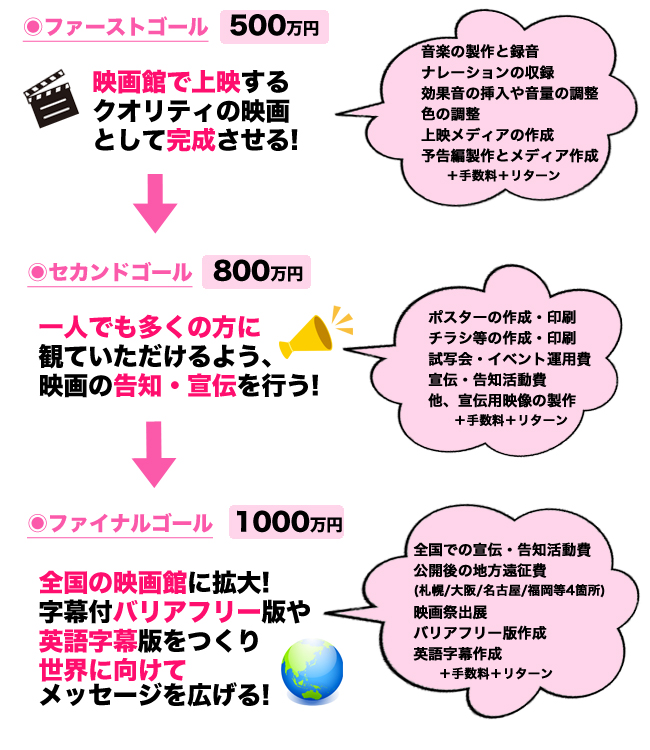 【目標金額を以下の3つのステップに定め、挑戦】いたします!